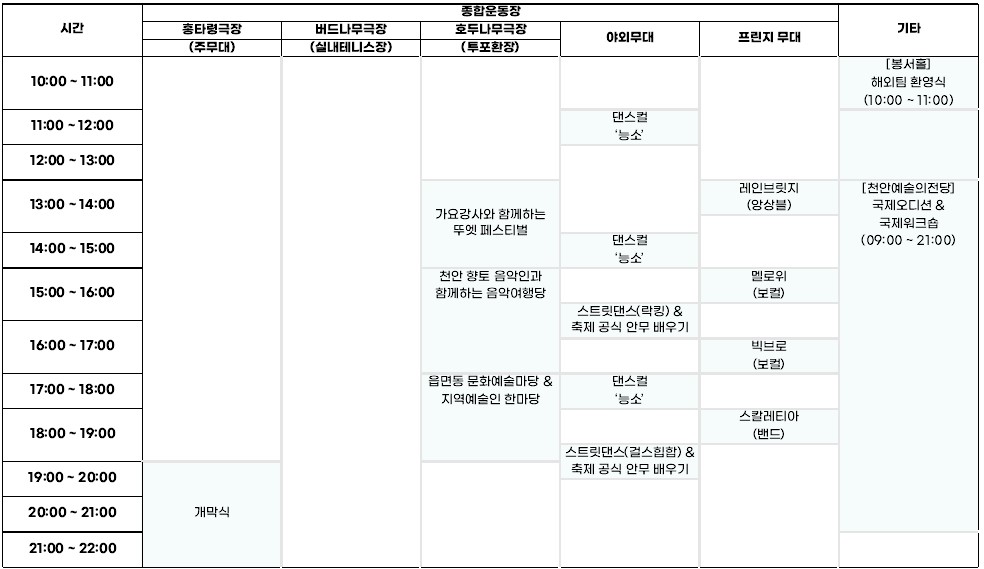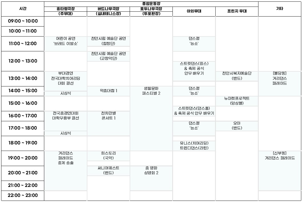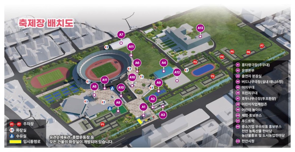 행사장은 천안종합운동장 일원에 위치해 있는데 다양한 행사, 체험활동 및 먹거리가 준비되어 있으니 시간이 되신다면 꼭 방문하셔서 즐거운 시간 보내시기 바라요