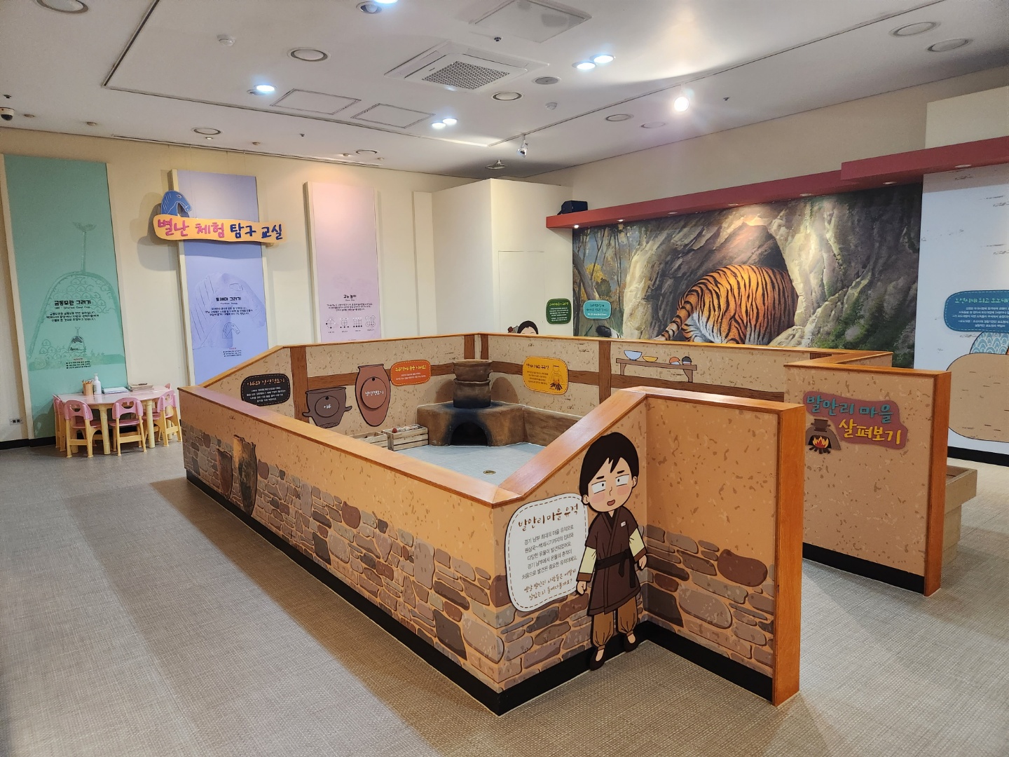 중앙에는 옛날 사람들이 살던 집을 재현하여 체험공간이 만들어져 있다.