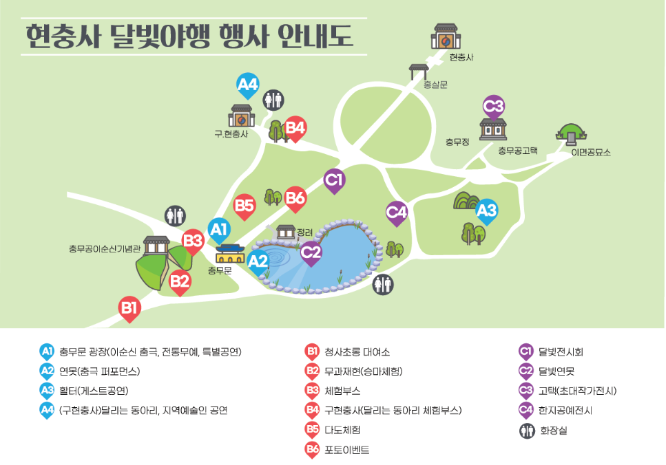 현충사 달빛 야행 행사에는 다양한 공연 및 체험 프로그램이 있으니 관심분야에 대해 참여하시면 좋을 거 같아요.