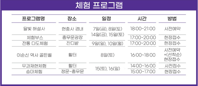 일시 : 2022년 10월 7일부터 10월 16일까지 17시부터 21시까지 현충사에서 진행됩니다.