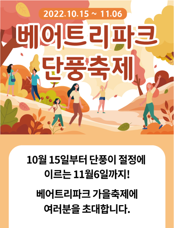2022년 10월 15일부터 11월 6일까지 약 3주간 진행되는 세종 베어트리파크 단풍축제입니다.