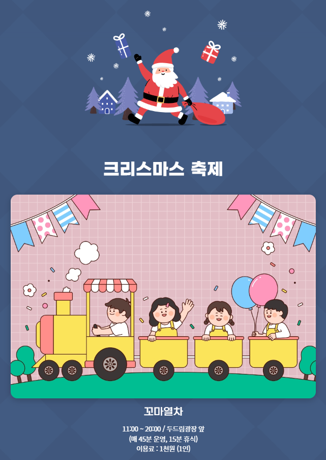 꼬마열차 체험은 오전 11시부터 오후 8시까지 두드림 광장 앞에서 진행됩니다.