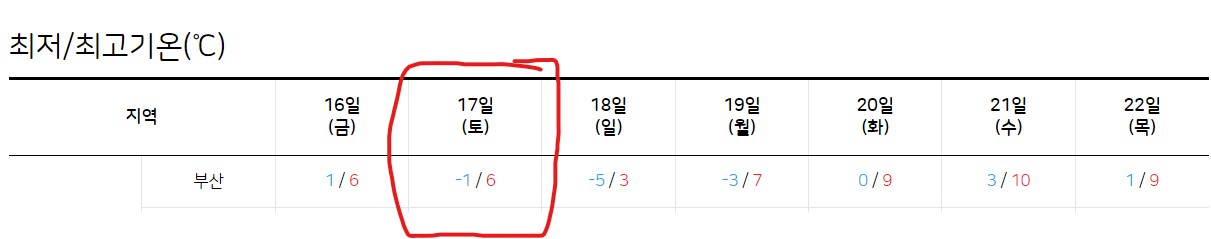 부산 날씨 안내 - 2022년 12월 17일