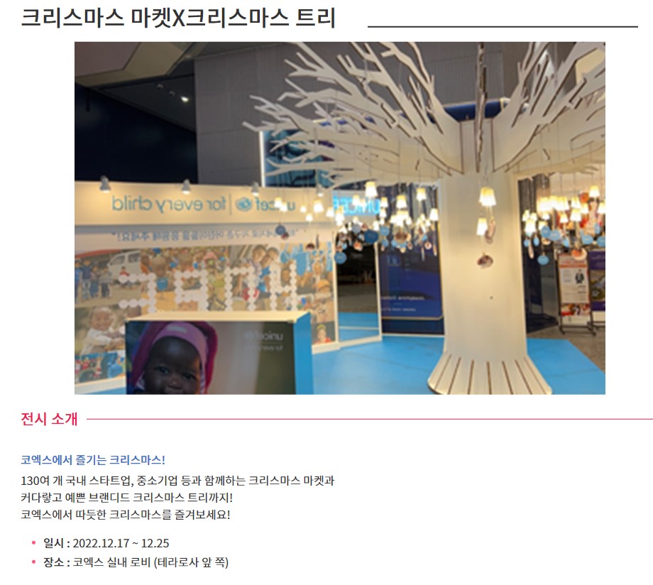 국내 기업과 함께하는 크리스마스 플리마켓에 크리스마스트리까지? 아이들과 함께 크리스마스 분위기를 즐겨보세요