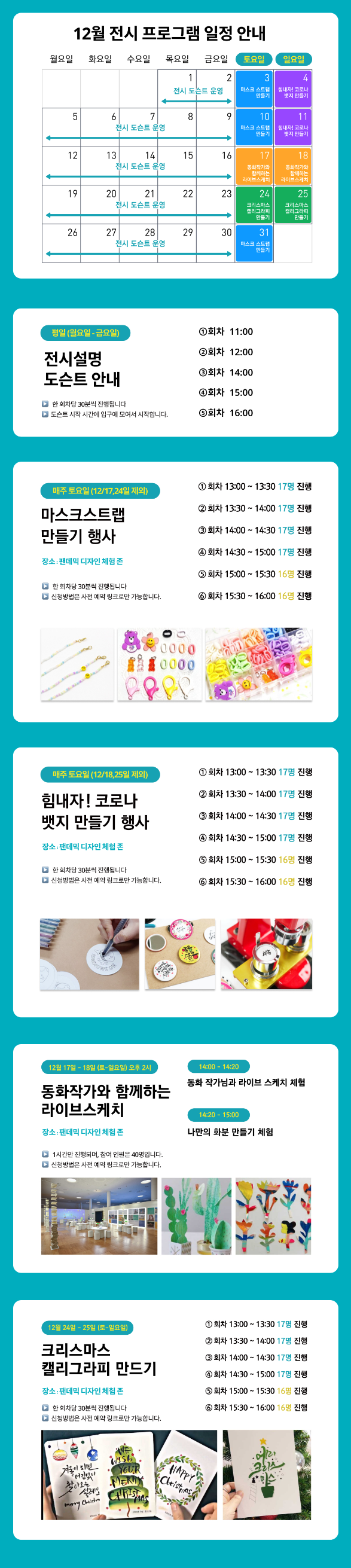 12월동안 매주 토,일요일에 다양한 프로그램이 진행됩니다.