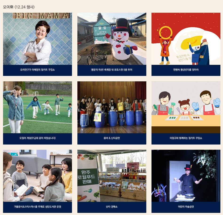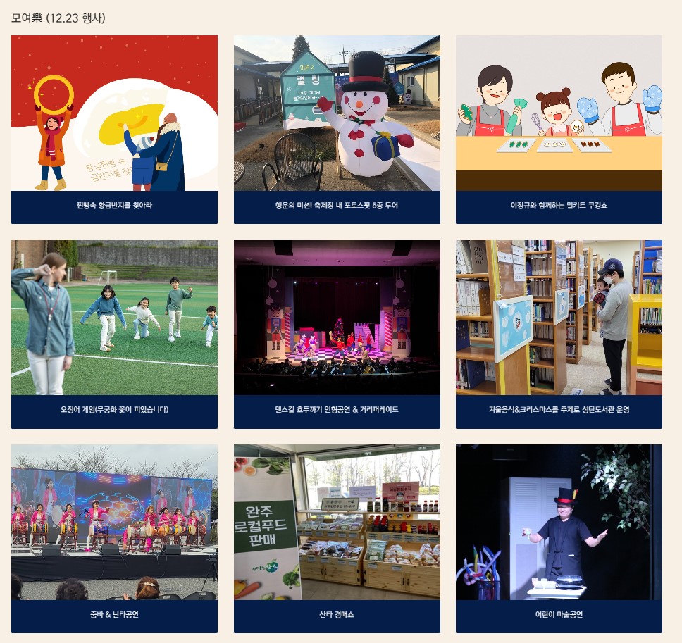 상 시 : 혁신도시 관광사진전(카페 2F), 겨울음식, 성탄을 주제로한 그림책도서관(카페 2F)
