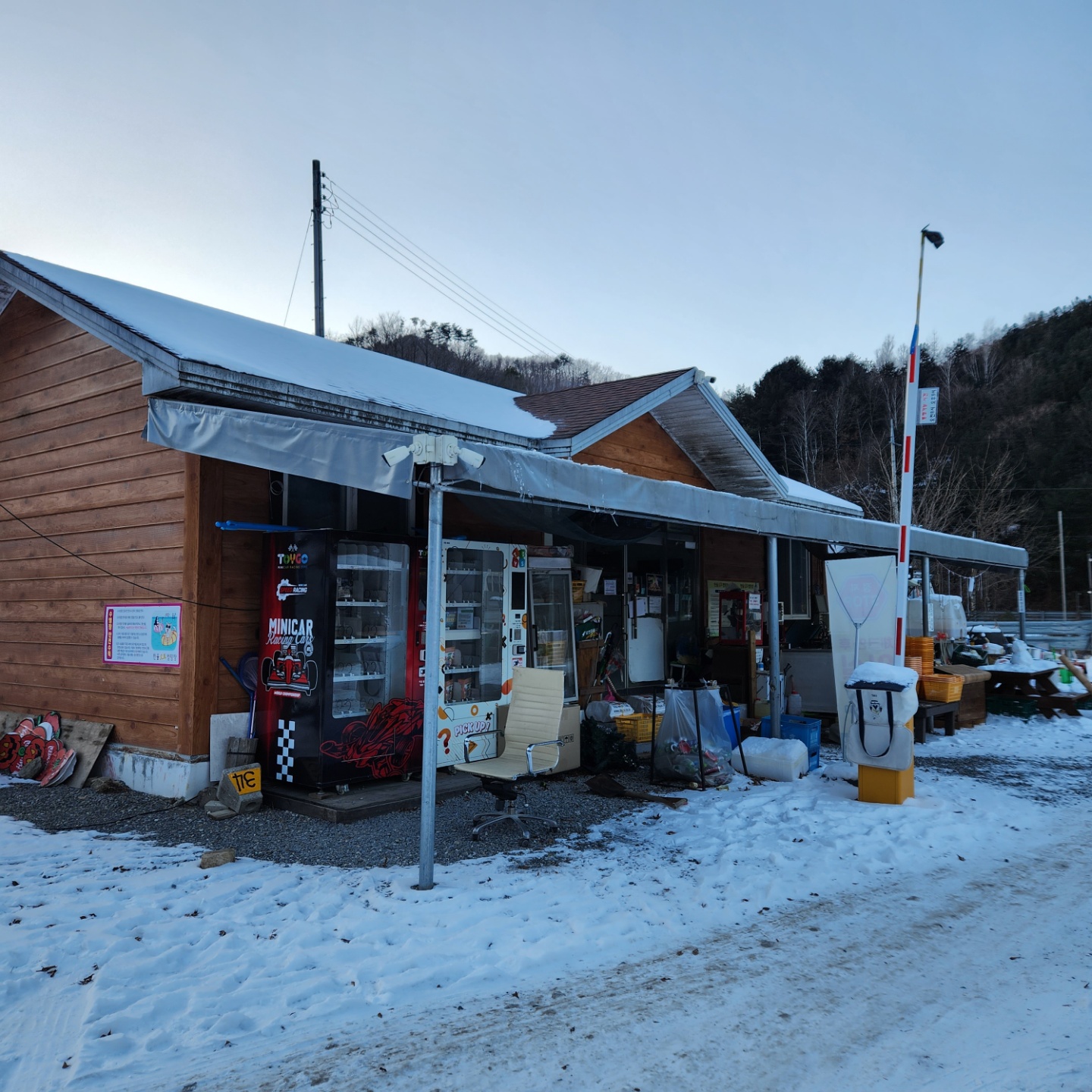 저희가 갔을 땐 전날에 눈이 많이 와서 미니카트랙에 눈과 얼음이 있어서 한 바퀴 돌려보고 포기하고 돌아왔답니다.