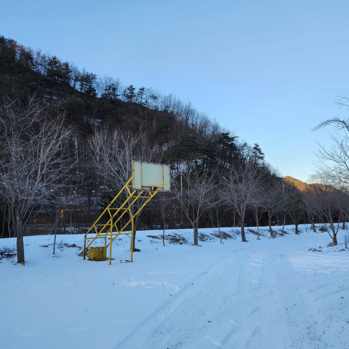 이날은 눈이 많이 와서 사용하지 못했지만 농구대가 있어 어른들이 쉬는 시간에 내기운동을 하기 좋을 거 같아요.