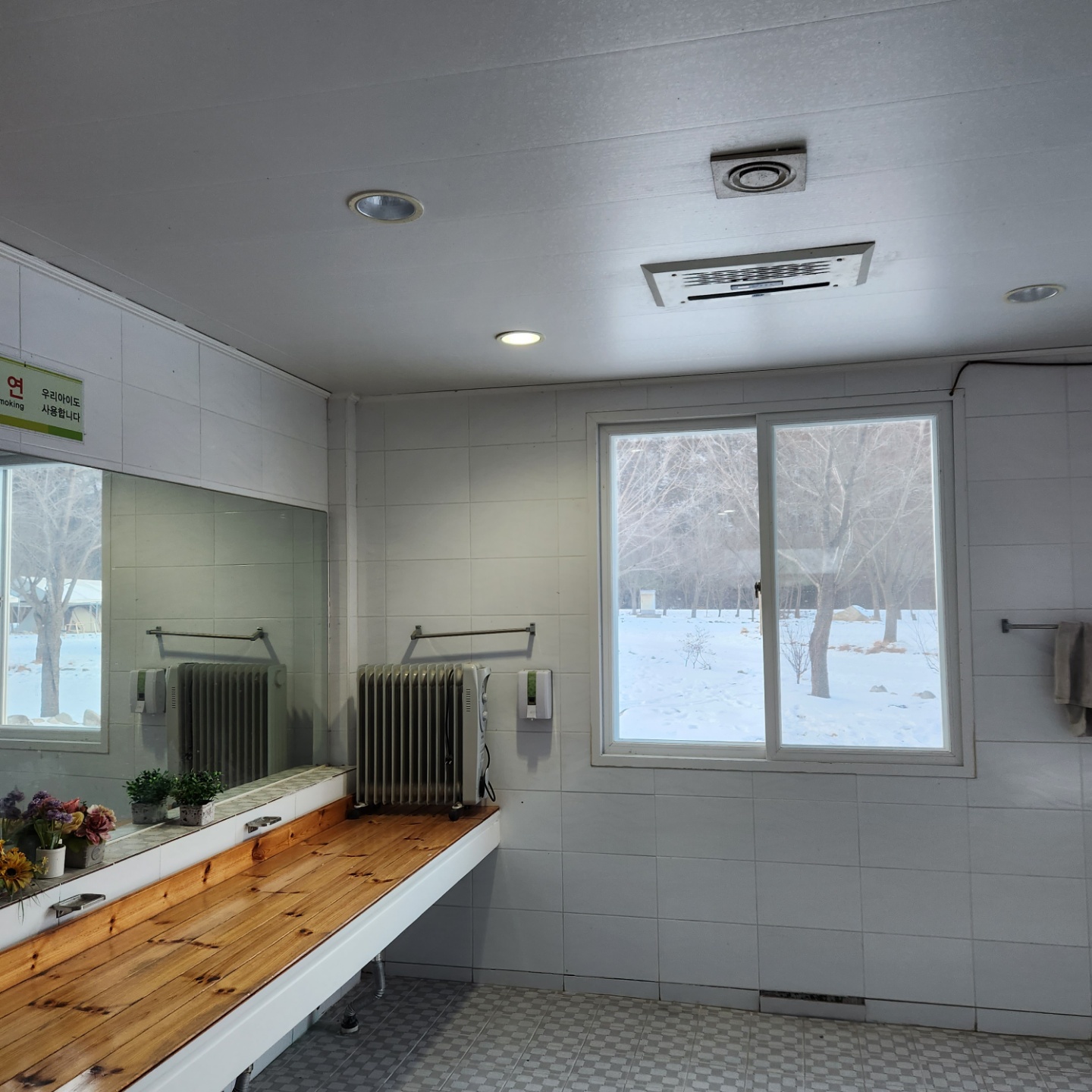 화장실 내부에 온풍기가 틀어져있어 외부보다는 확실히 따뜻했어요.