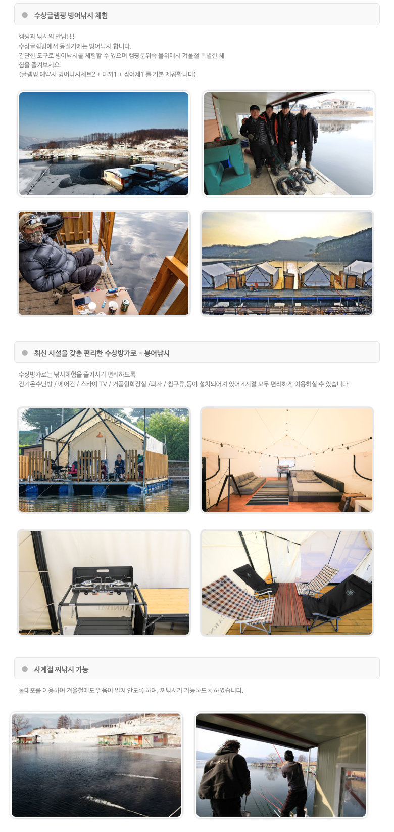 모든 수상글램핑은 낚시공간 3자리만 제공