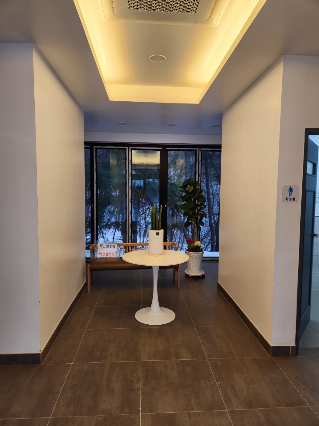 자동문으로 된 건물을 들어서면 로비가 있고