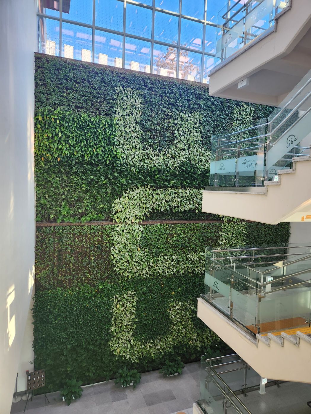 처음 센터로 들어가면 왼쪽에 안내데스크와 정면에 탄소시계와 계단 뒤편에 와우숲이 벽면에 준비되어 있어요.