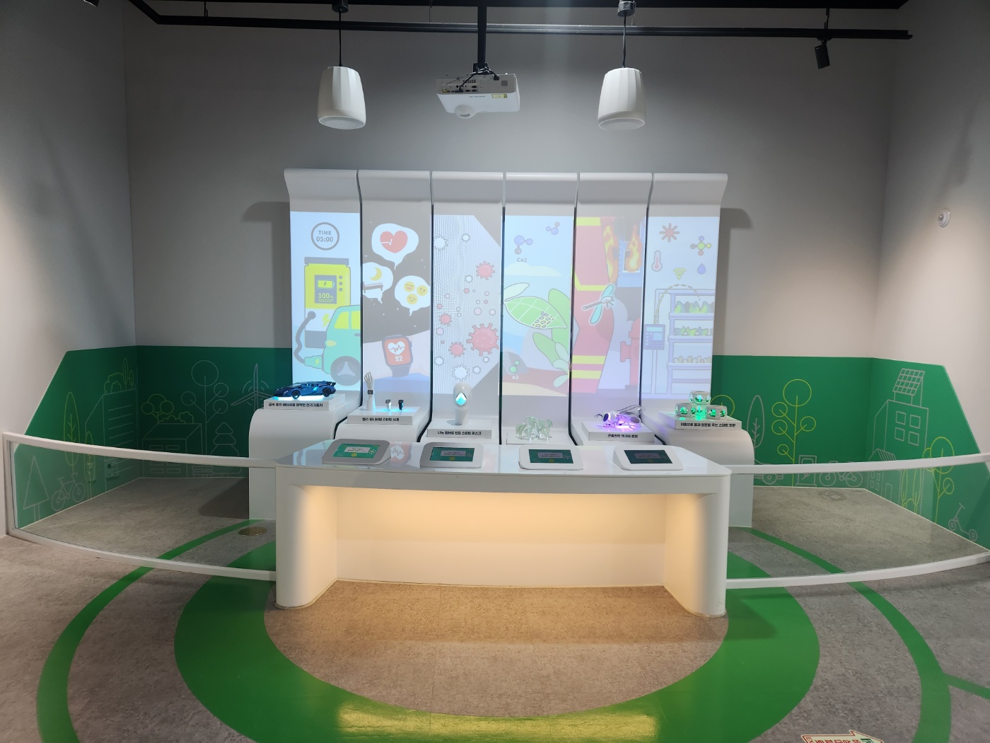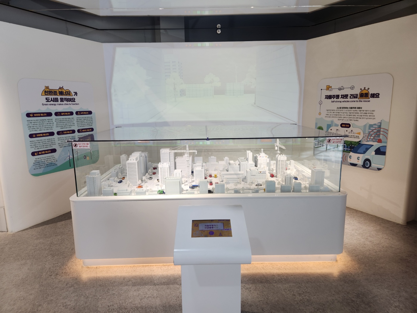 실제 도시를 작게 만들어서 자율주행 소방차가 출동하는 모습을 재현해 놓았더라고요.