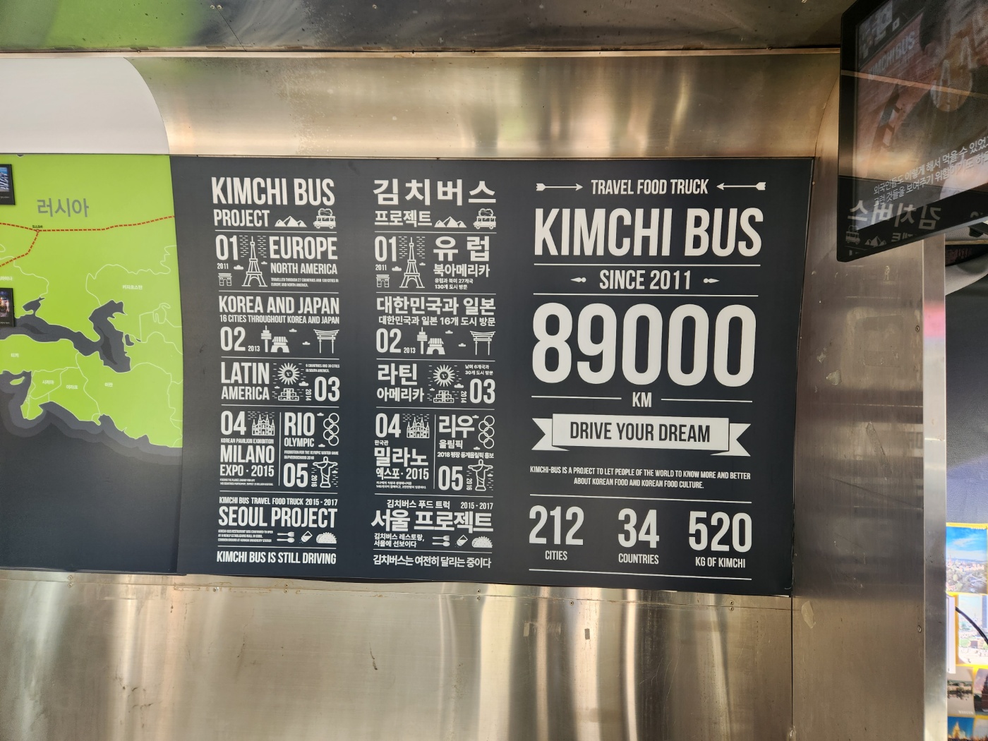 김치버스는 무려 34개국, 212개 도시, 8만9천킬로미터를 운행했다고 합니다.
