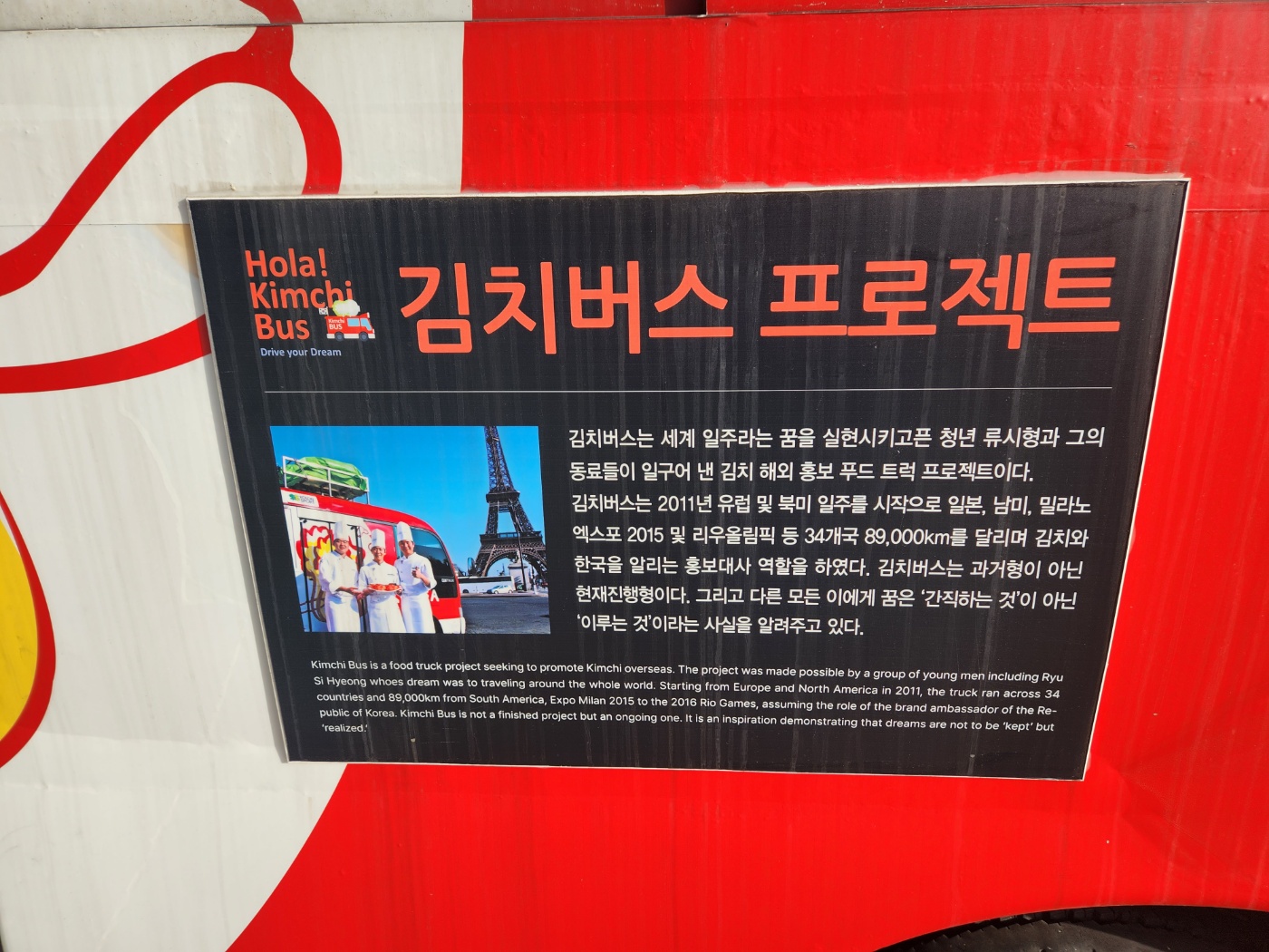 김치버스 프로젝트에 대한 내용이 설명되어있었는데 세계일주를 하며 김치를 홍보하는 프로젝트로 한국과 한국의 음식인 김치를 알리는 중요한 일을 하고 돌아온 김치버스입니다.