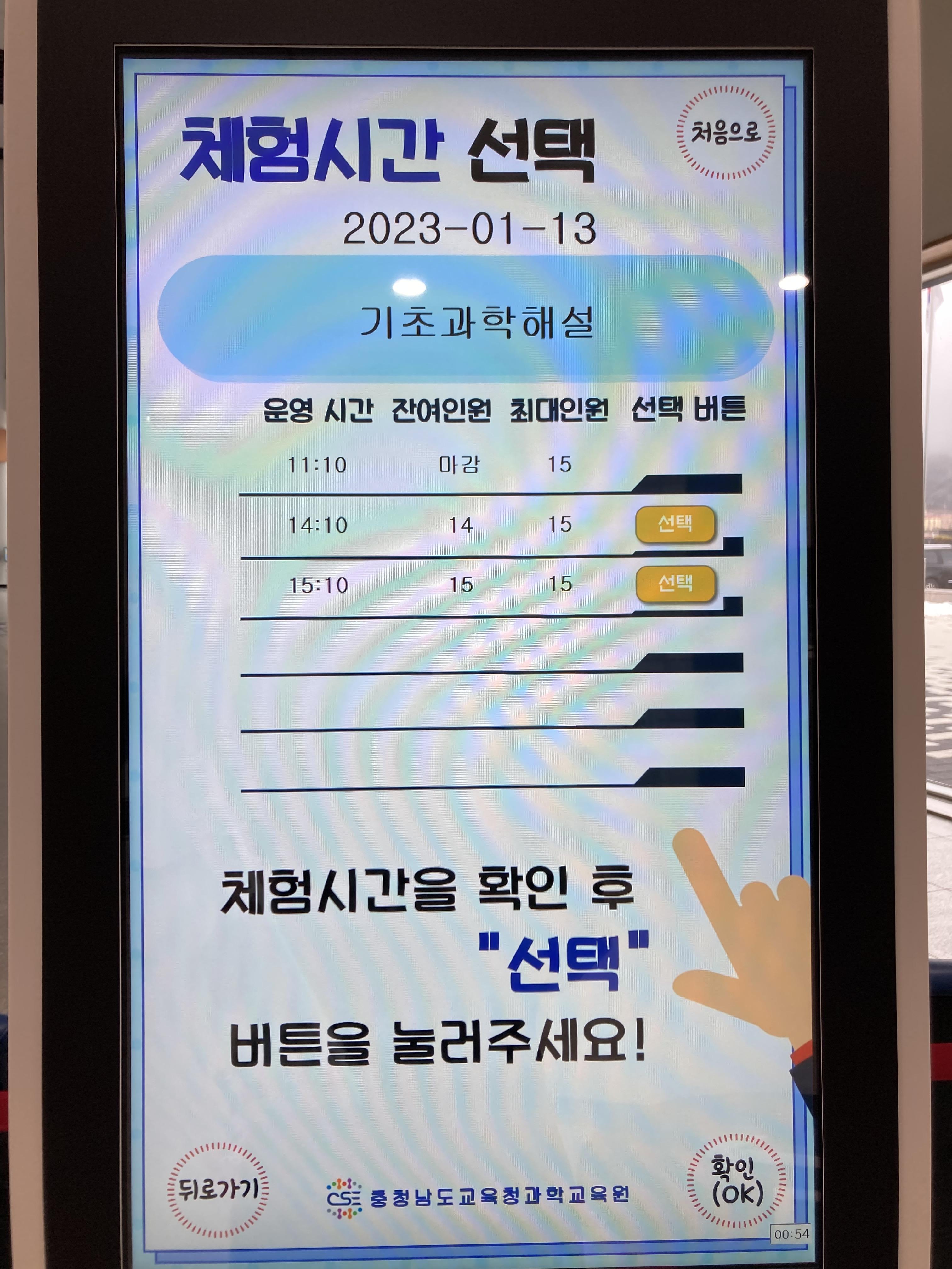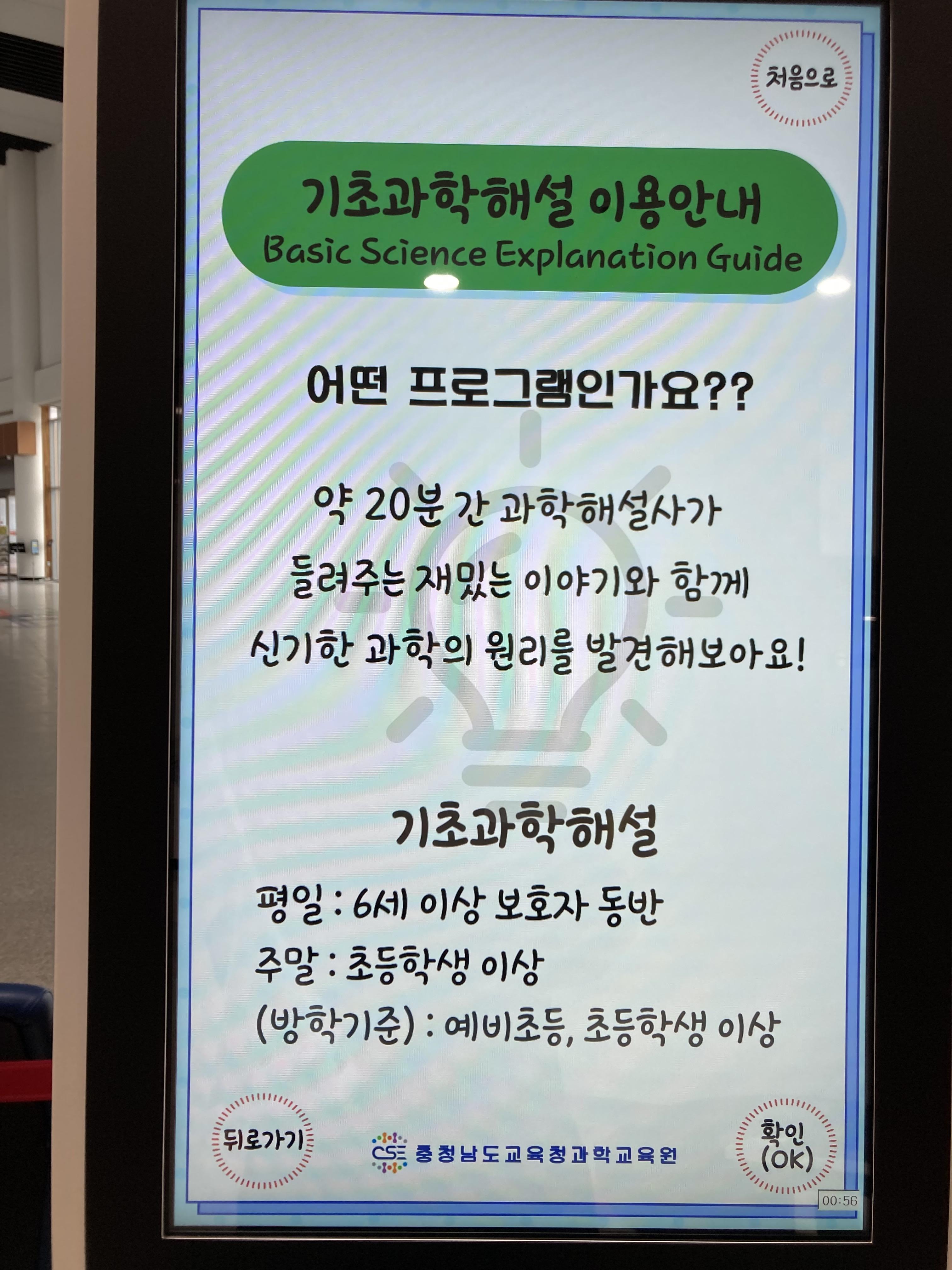2. 과학교육원 1층 로비에 비치된 키오스크로 현장 예약진행