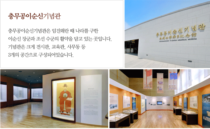 임진왜란 때 이순신장군과 조선 수군의 활약을 볼 수 있는 기념관은 전시관과 교육관으로 나뉘어있다.