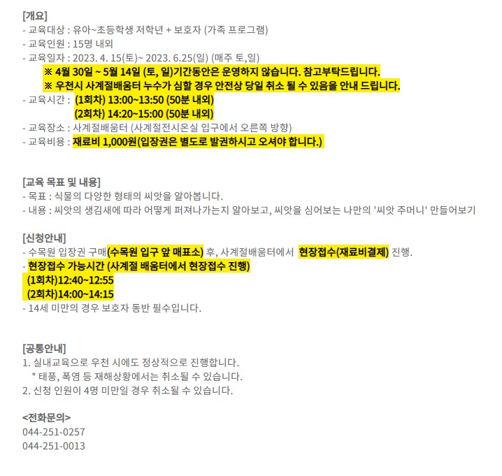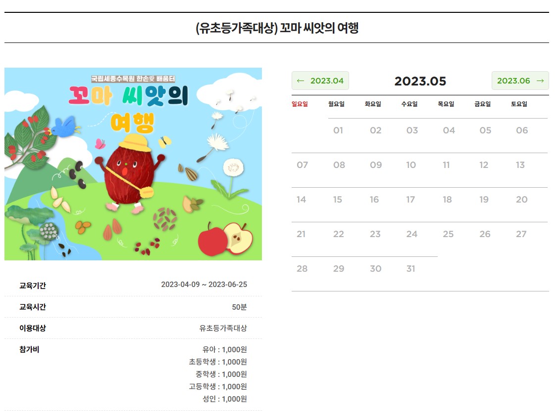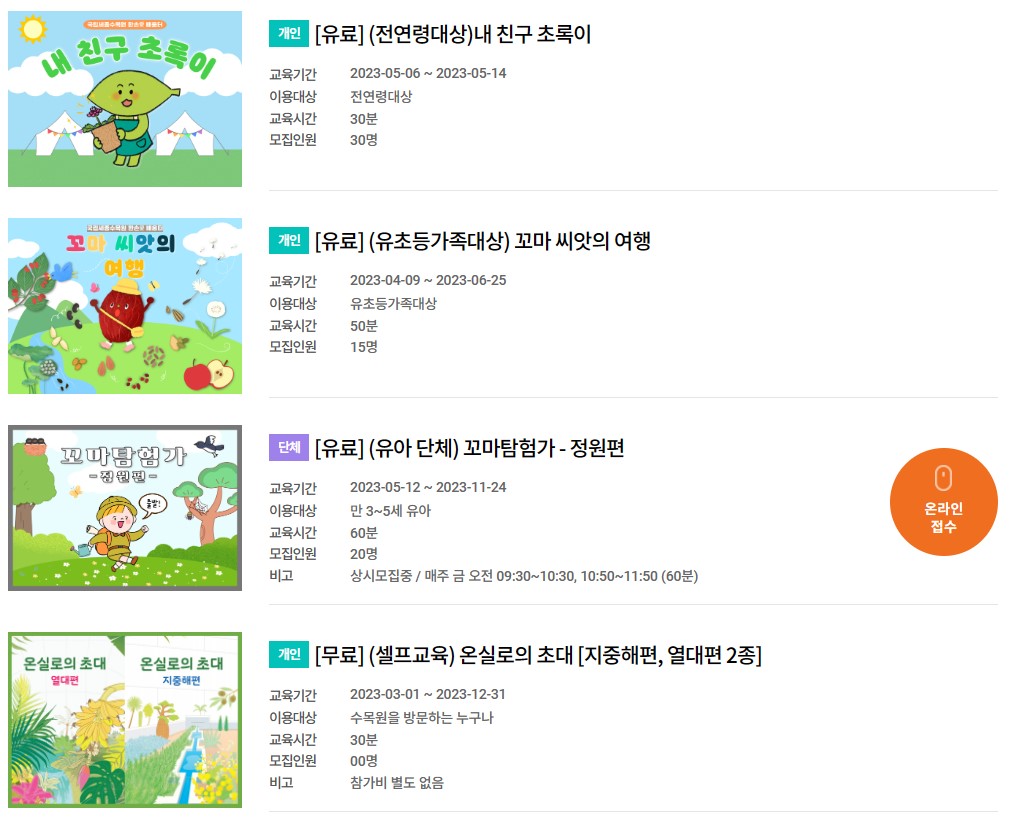 국립세종수목원 유치원, 초등학생 교육 현장예약 및 온라인예약 방법