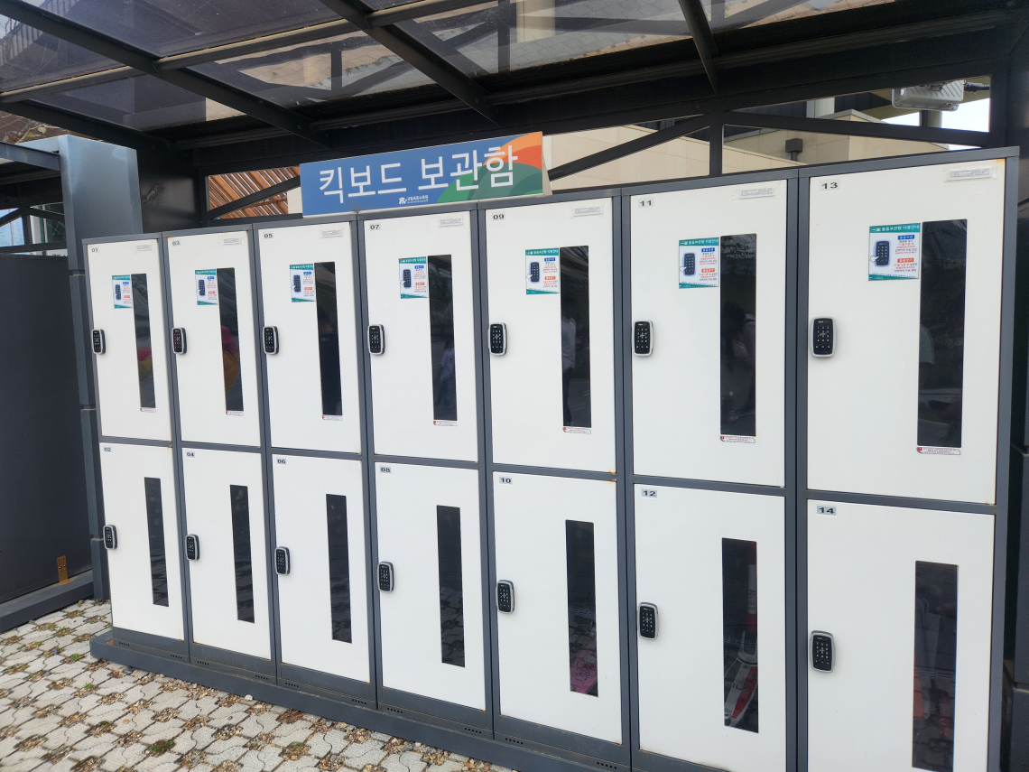 킥보드를 가지고 오신분들을 위해 킥보드 보관함이 배치되어있었어요