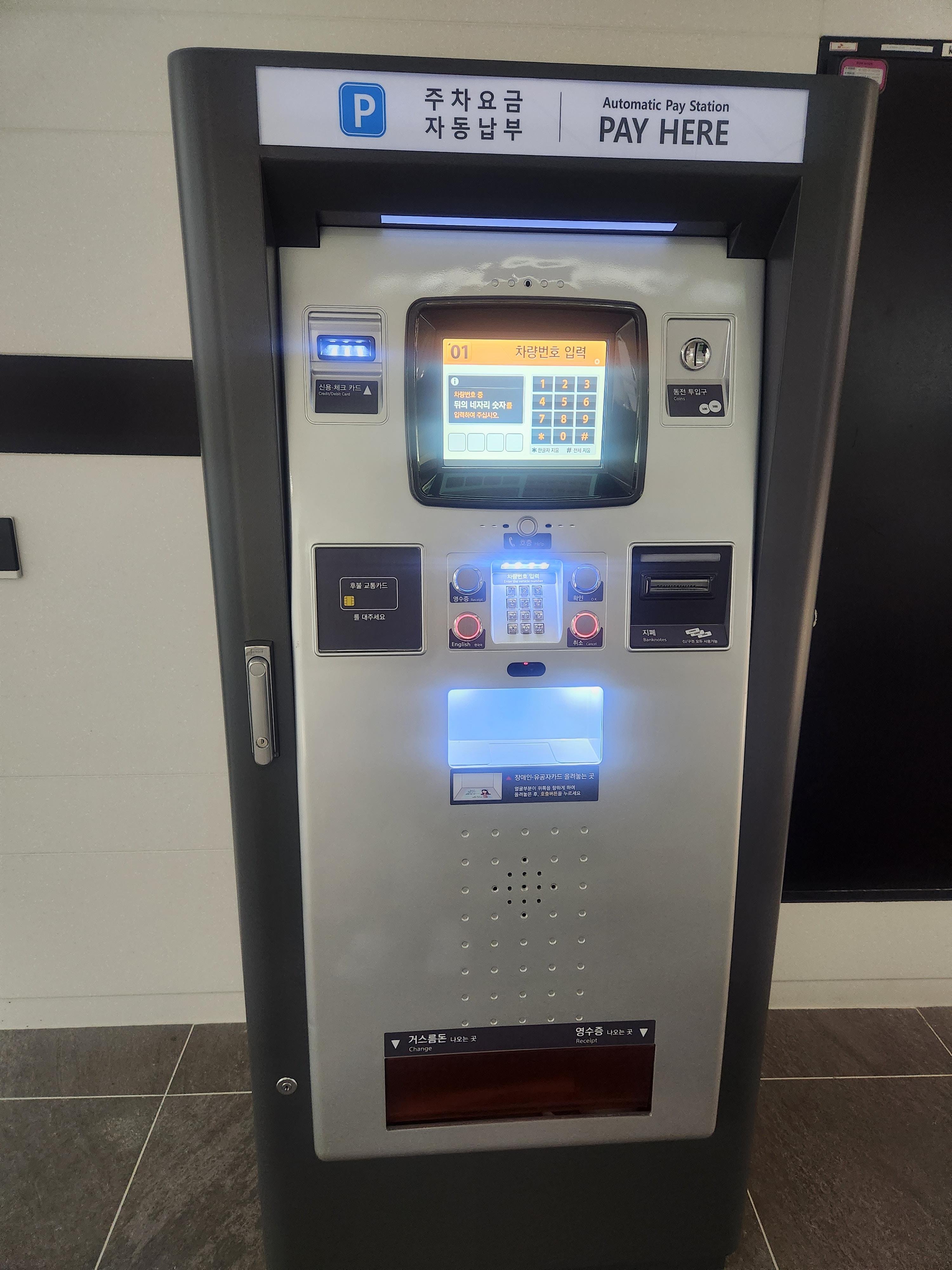 1층 로비에 주차요금 자동납부 기기가 비치되어 있어 주차요금이 따로 정산되는 줄 알았는데